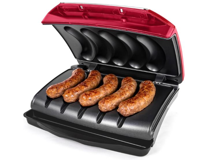 This sausage grill has an oil drip tray to collect grease and oil from your sausages. Just like other appliances, it has an indicator light.