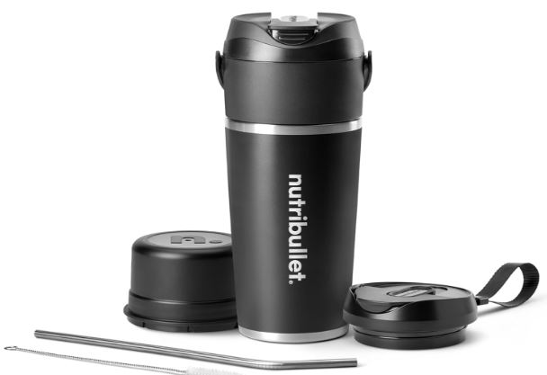 Meet the nutribullet Flip Blender: an insulated portable blender that you can use to make delicious smoothies anywhere. It has a powerful enough motor to handle frozen ingredients and a stainless steel cup that keeps the ingredients up to 24 hours.