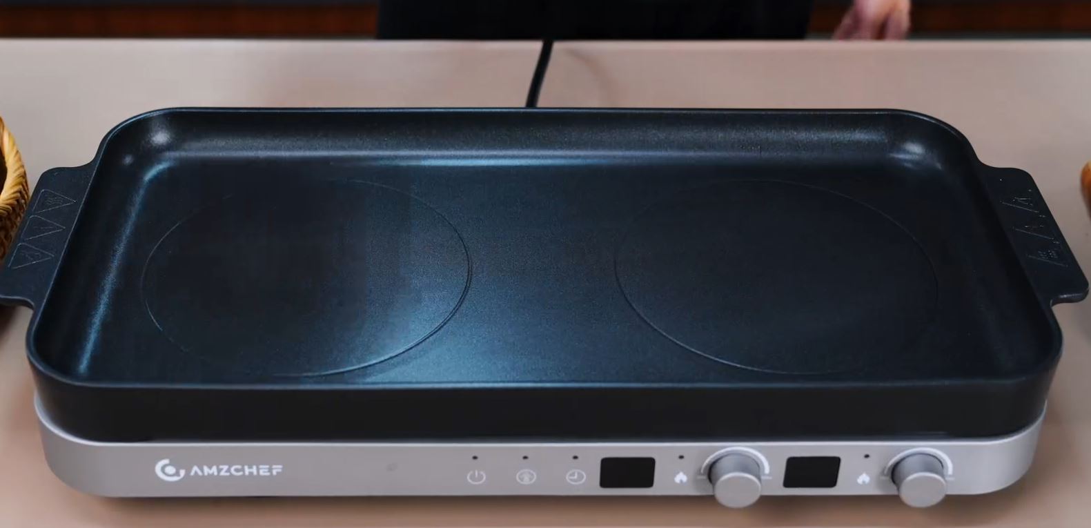 Here is a cooktop with dual zones and 9 power levels that comes with everything you need to prepare a complete lunch for your family. The AMZCHEF Double Induction Cooktop is a 1800W 2-burner portable stove with a removable griddle pan. It also has a 99-min timer. It is ready for indoor and outdoor use.