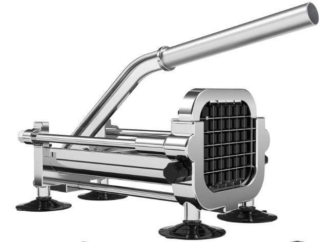 This French fry cutter has an extended handle. It has a 6.1 x 6.49 x 12.2″ footprint.