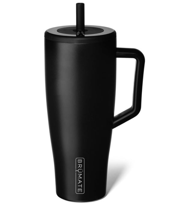 This is the BruMate Era Tumbler: a leakproof tumbler that you can use for cold and carbonated drinks. It has a cup holder friendly base. It has a stainless steel straw lid, allowing you to enjoy your drink with peace of mind. This tumbler has an ergonomic handle.