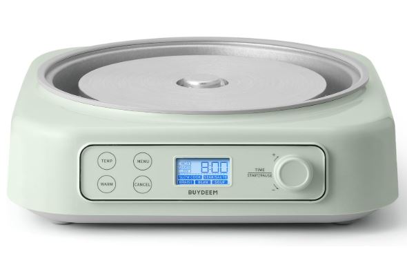 This is the BUYDEEM LP55: a 5-in-1 slow cooker that you can use with various cookware to prepare meals for your family and guests. It has 5 cooking modes for you to try, including sear/saute, braise, bean, and soup modes. It works with flat-bottom pots under 7 inches in diameter.