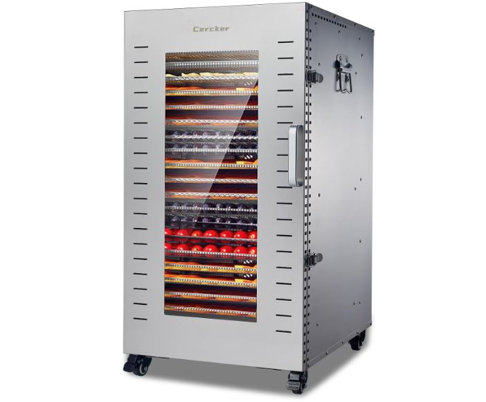 Food dehydrators are wonderful for making fruit rolls and beef jerky. Many regular models have 5 or 10 trays, which is more than enough for a small family. The Cercker Commercial Food-Dehydrator is made for larger families and businesses. It has 22 trays with plenty of room for your ingredients. It has an adjustable temperature from 104 to 194F.