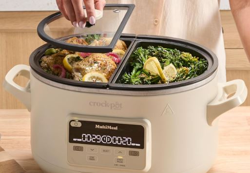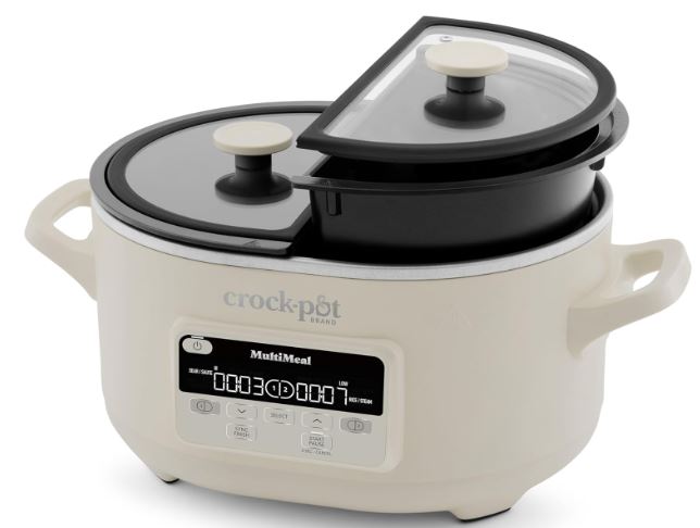 Have you ever wanted to prepare two meals for your family using only one cooking appliance? The Crock-Pot MultiMeal Multicooker has you covered. It has dual pots and uses DualSync technology to make sure your dishes are ready at the same time. It has various cooking functions, including slow cook, saute, bake, rice/steam, and keep warm.