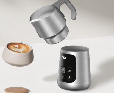 In the past few years, we have covered plenty of cool milk frothers for latte and other coffee based drinks. The DREO BaristaMaker is a milkfrother with multiple temperatures and programs for you to choose from. It has impeller and disc teams for micro and thick foam. The BaristaMaker has a digital display and 4 buttons for control. You can use it to make frothed milk for cappuccino, latte, and other drinks. You can also use it to prepare protein shakes.