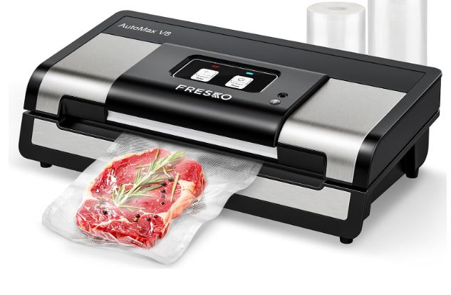 In the past few years, we have covered plenty of powerful food sealers here in the past. The FRESKO AutoMax V8 Sealer is also worth a look. It comes with dry & moist detection. It has a 140W motor to get the job done fast. It can seal up to 50 bags in 20 minutes. It has a built-in cutter and bag storage.