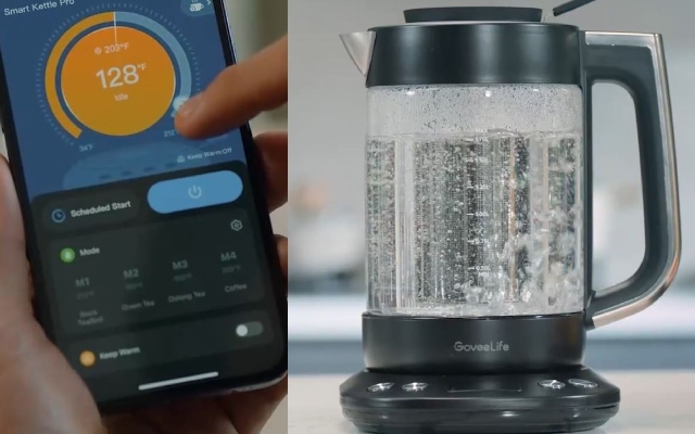 In the past few years, we have covered plenty of coffee makers that can be controlled with a smartphone. The GoveeLife H717A App Smart Tea Kettle helps you brew your tea more comfortable. It comes with 1.7L volume and 4 preset temperatures from 180F to 212F. It has a digital LCD screen that shows real-time and target temperatures.