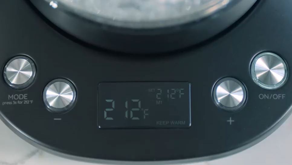 This kettle can heat your water in 8 minutes and keeps it warm for up to 2 hours. It has a food-grade stainless steel construction. It also has safety features such as auto shut-off and boil-dry protection.