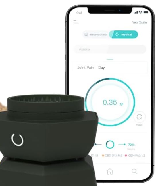 Meet the GRAMSS Herb Grinder & Scale: a smart tool that combines with your phone to let you measure and grind your herbs like a pro. It has 10mg accuracy and up to 50g capacity. This gadget is compatible with iOS and Android devices. To get started, turn it on, set it in scale position, connect to the app, weigh, and grind.