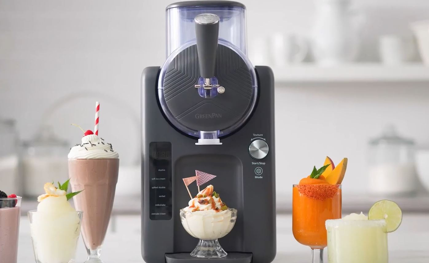 Frozen drink makers are a lot of fun to use this time of the year. You can use them to make milkshakes, slushies, and cocktails without ice. The GreenPan Frost Ice Cream Machine & Frozen Drink Maker is one of the most advanced models on the market. It has a built-in compressor to prepare your frozen drink in just 15 minutes. It has 7 texture settings and 6 versatile modes.