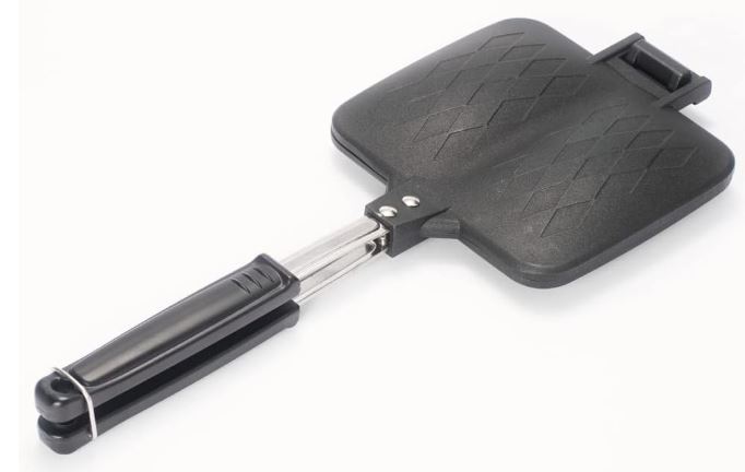 This stovestop sandwich maker weighs only 1.02lb. It has a non-stick design. It works on electric and gas stovetops but you can also use it outside while camping.