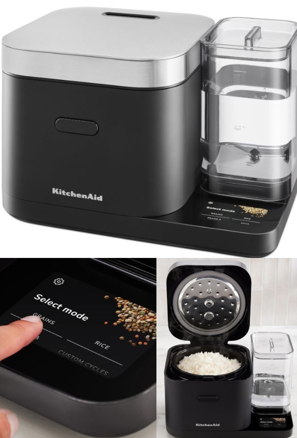 Here is one of the coolest rice cookers we have seen. The KitchenAid Grain and Rice Cooker has an integrated scale and a removable water tank. It also has touchscreen controls. It comes with a ceramic pot and steamer basket. It has 8-cups cooked rice capacity. Rice not your thing? You can use this rice cooker to make beans, oats, couscous, quinoa, and a lot more.