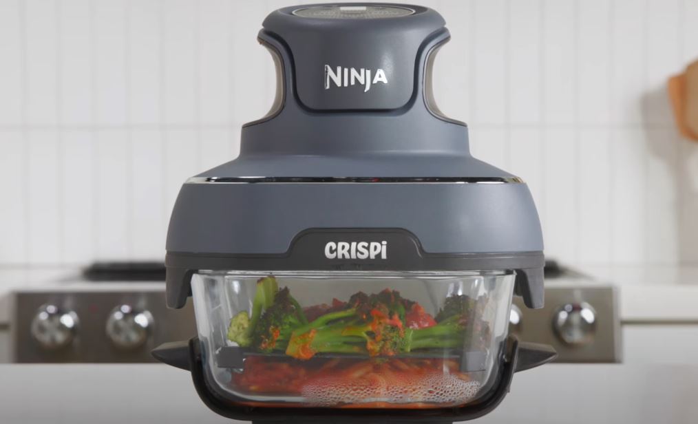 Meet the Ninja Crispi Portable Cooking System: an air fryer and microwave that can cook your meals in 7 minutes. It has max crisp, bake, air fry, and recrisp function. It has a high-grade borosilicate glass design to withstand temperatures up to 450F.