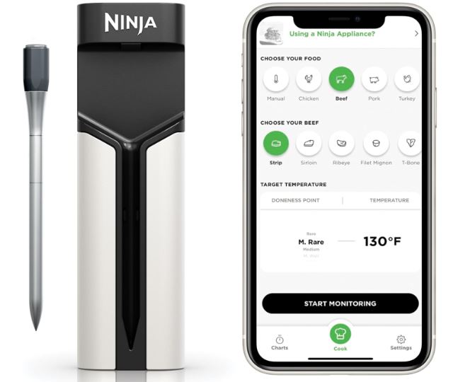 Cooking your meat to perfection doesn’t have to be a guesswork. The Ninja ProChef WP100 is an app connected wireless meat thermometer you can use to to get it done right every time. It has a waterproof design and can withstand temperatures up to 700F.