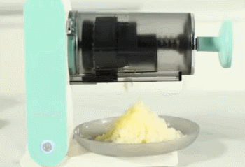 This shaved ice machine is easy to use: just make your ice in the mold, put it in the bucket, lock it in, and click start.