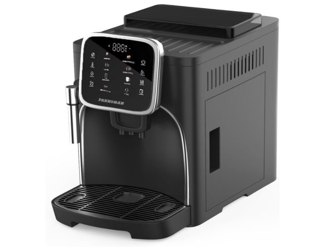 Here is a gorgeous coffee machine with an Italian 19-bar pressure pup that extracts rich flavor from your coffee. The Pakroman SA 7Z Automatic Coffee Machine has a touchscreen display for easy operation. It can make you 2 cups of coffee at the same time. This machine has a manual foam system built-in.