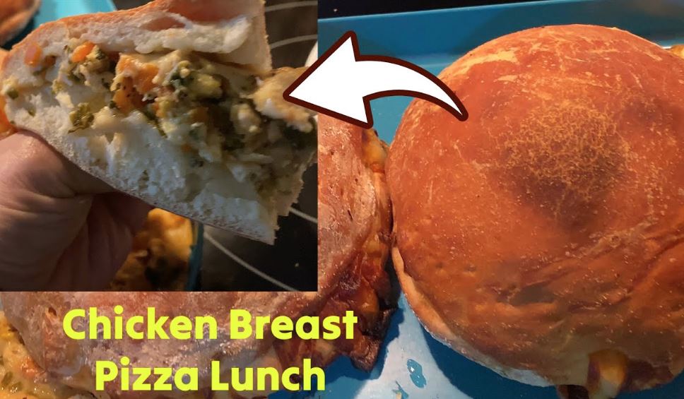 Here is a delicious pizza ball I made with chicken meat for lunch. This large pizza ball was made with pizza dough, 0.5lb of minced chicken breast meat, 0.5 cup of minced green onion, minced parsley, spicy mustard, boiled eggs, garlic powder, and red pepper powder. I simply cooked the ingredients in a griddle, put them inside pizza dough and baked for 40 minutes at 350F.