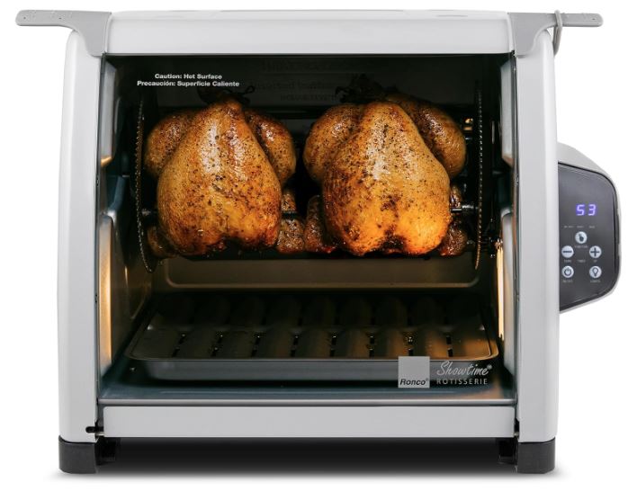Ronco’s rotisserie ovens shouldn’t need any introduction. Most of us have seen them on TV in the past. The Ronco 6000 Platinum Series Rotisserie Oven is a large oven with 12lbs capacity. It comes with rotisserie, sear, and no heat rotation modes. It has enough room to cook a 12lbs turkey.