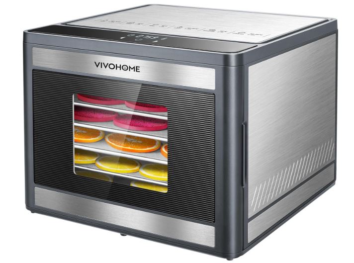 Here is another food dehydrator that saves you effort making your own dried fruit rolls and beef jerky. The VIVOHOME Food Dehydrator Machine has a stainless steel design. It has 4.8 square feet of drying space and lets you use it on vegetables, herbs, meats, and fish.