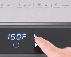 This model has 0.5 to 48H timer settings. It has an adjustable temperature range from 95 to 176F. It has a noise rating of 48dB, so it is pretty quite. This machine has dishwasher safe trays. It comes with 6 metal trays and 6 silicone dehydration sheets.
