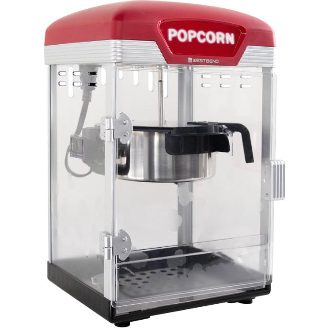 Many of us enjoy having some popcorn when watching a movie. The West Bend Stir Crazy Movie Theater Popcorn Popper lets you prepare it at home. It has a non-stick popcorn kettle and scoop. It has 4qt capacity. It also has a LED popcorn sign.